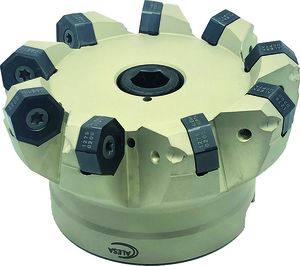 在 45°HEPTA面銑刀 都配備了總共14個切削刃(2×7)雙面可轉(zhuǎn)位刀片。鋒利的磨削邊緣需要較少的主軸功率并且工藝友好。每個邊緣都有一個用于高質(zhì)量表面的磨光階段。不均勻的節(jié)距以及剝離切削過程和良好的平衡是 5 軸加工中心銑削過程的理想環(huán)境。