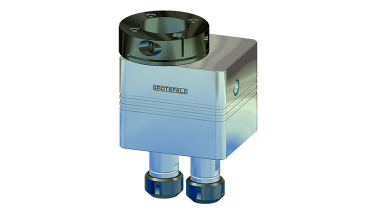 帶夾緊環(huán) B100 的鉆孔齒輪也可以由鉆孔主軸 B045 和驅(qū)動單元 D045 驅(qū)動。此外,使用我們的驅(qū)動適配器 DN 和 DMN 可以適應機床主軸以及 GROTEFELD 旋轉(zhuǎn)單元 DVM。