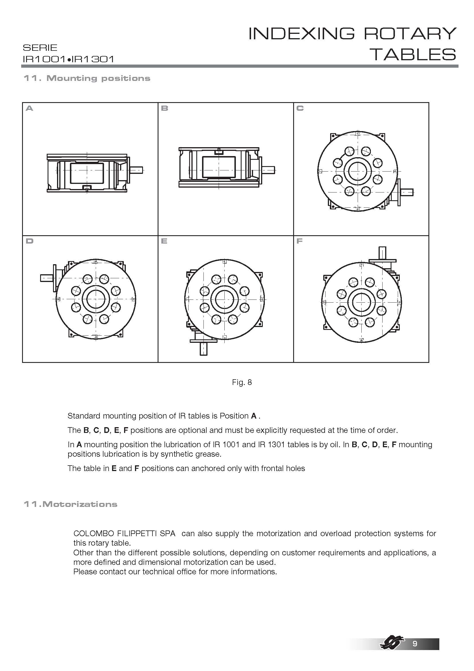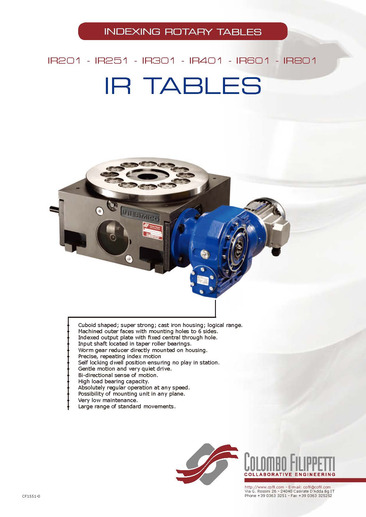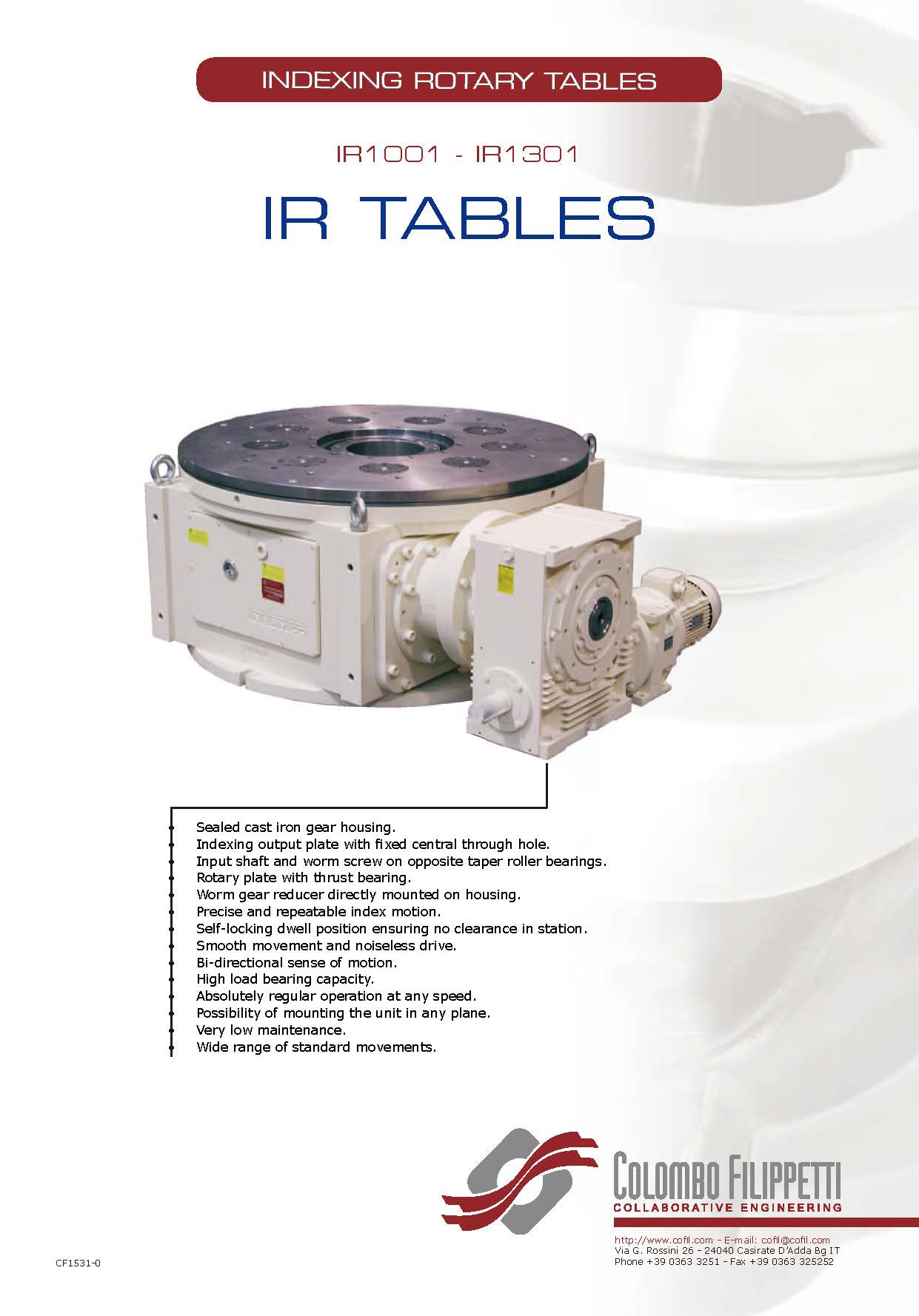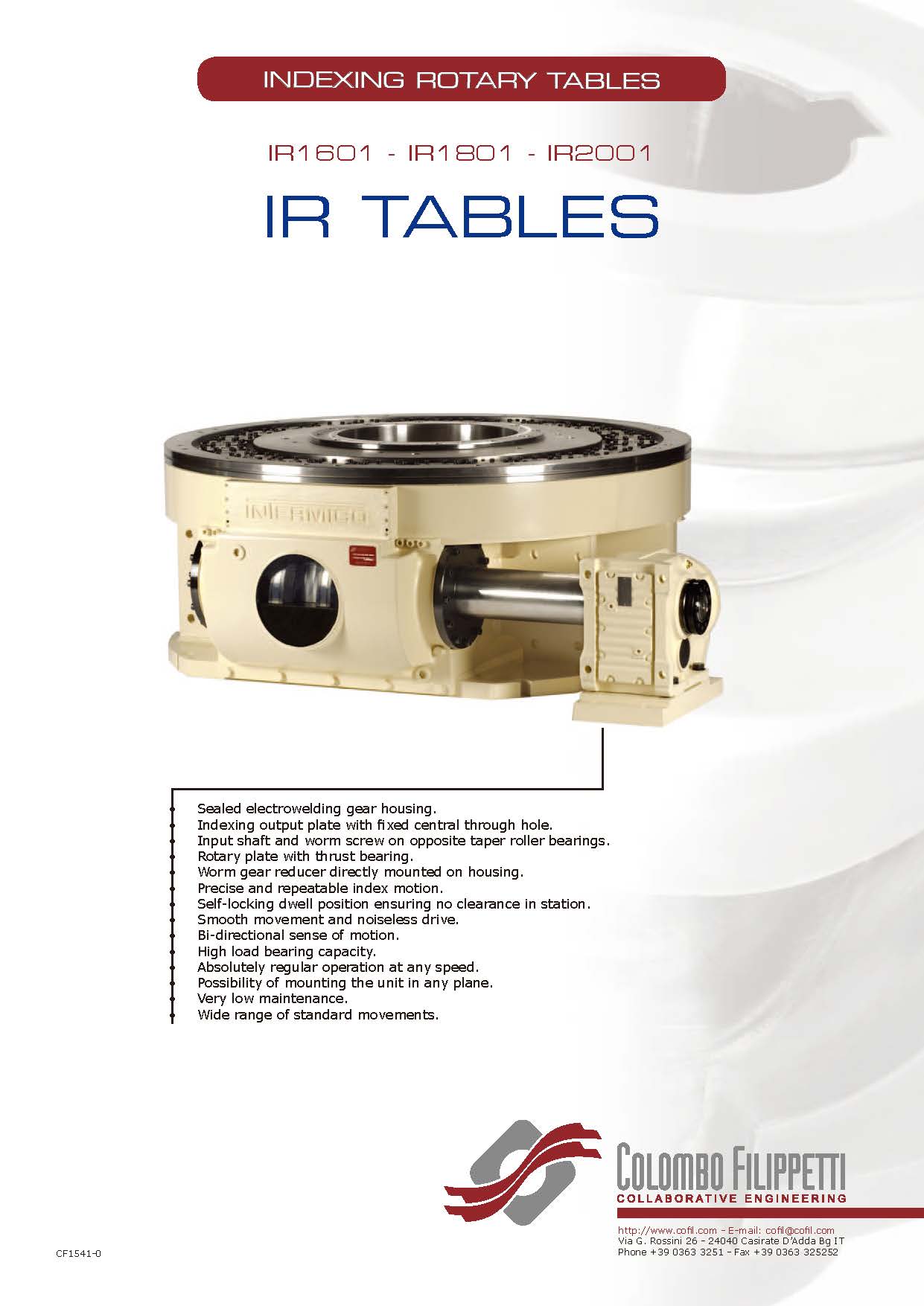 COLOMBO FILIPPETTI spa "IR" Minindex 系列的分度轉(zhuǎn)臺是圓柱形凸輪機(jī)械裝置,可將輸入軸的勻速旋轉(zhuǎn)運動轉(zhuǎn)換為輸出表盤的分度旋轉(zhuǎn)運動。